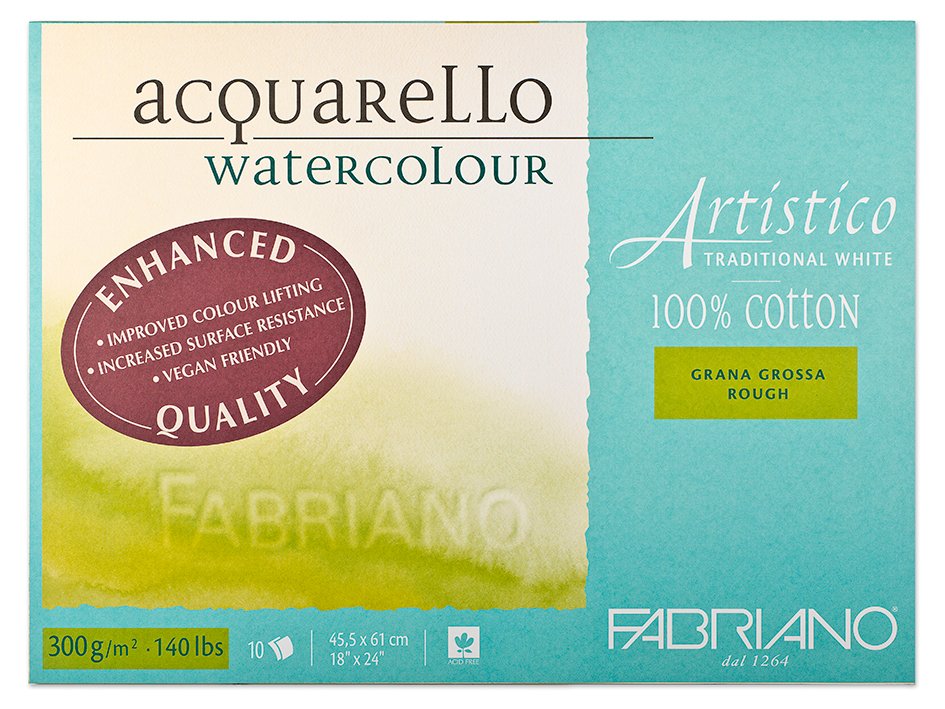 Hjem / Papir og kartong / Papir til maling / Akvarellpapir / Fabriano Artistico EQ Traditional 300g GG 45,5x61cm 10ark