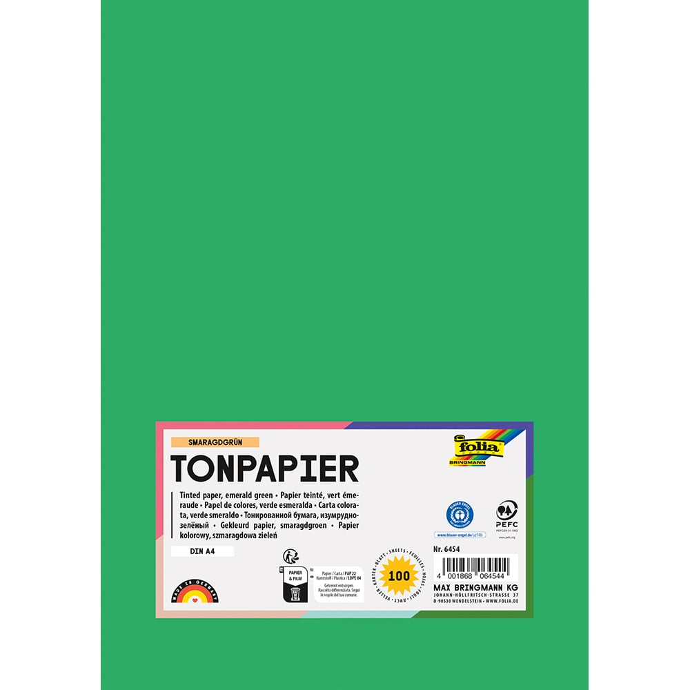 Hjem / Papir og kartong / Kartong og farget papir / Folia Tegnepapir A4 – 130g 100ark – 54 Smaragdgrønn
