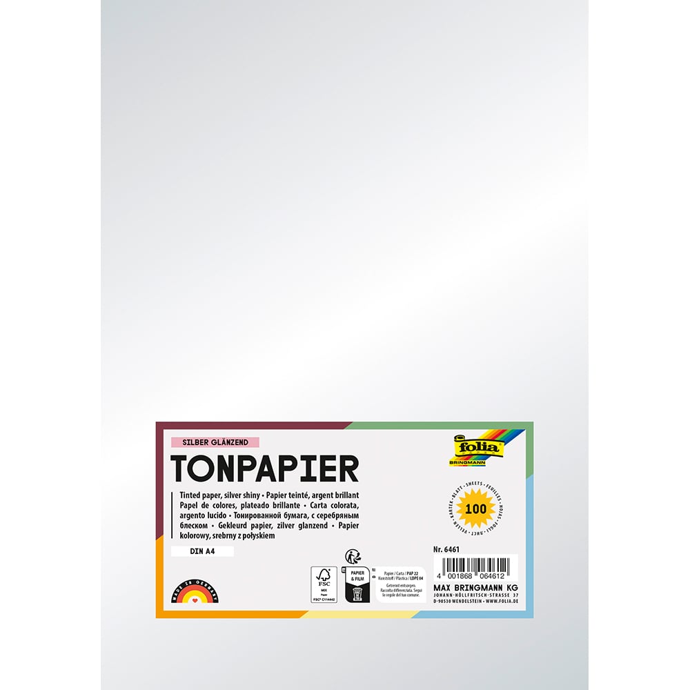 Hjem / Papir og kartong / Kartong og farget papir / Folia Tegnepapir A4 – 130g 100ark – 60 Sølvglanset
