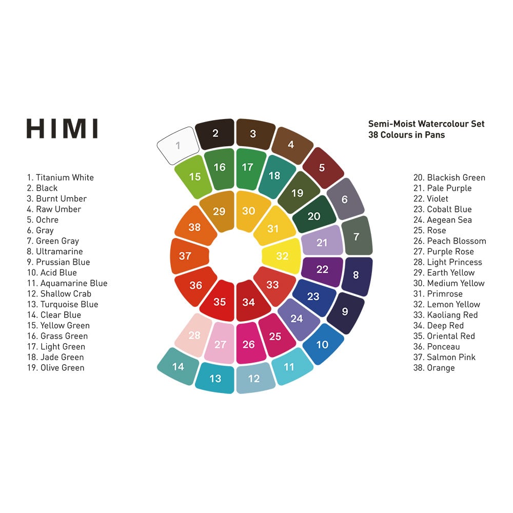 Hjem / HIMI Semi-Moist Watercolour Akvarell Sett – 38stk + pensel