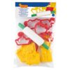 Et modelleringssett med 6 former, 6 kutteformer og en kjevle,