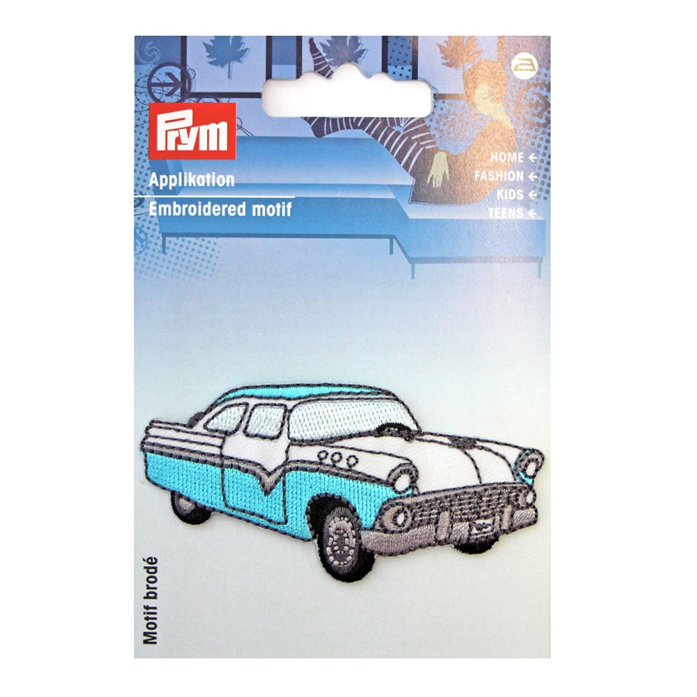 Hjem / Sy og Strikk / Strykemerker, lapper, dusker og nagler / Strykemerker / Prym Strykemerke – Veteranbil – turkis