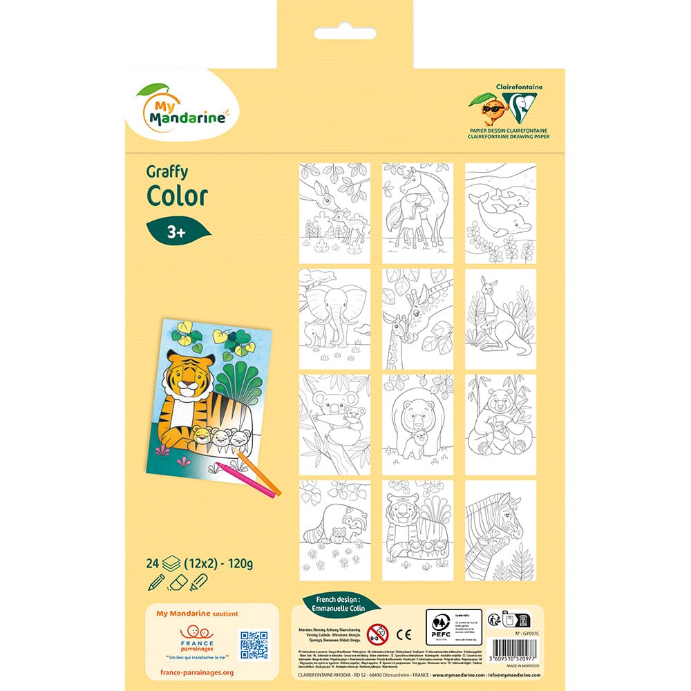 Fargeleggingsbok med motiver av ville dyr og mamma og baby dyr,